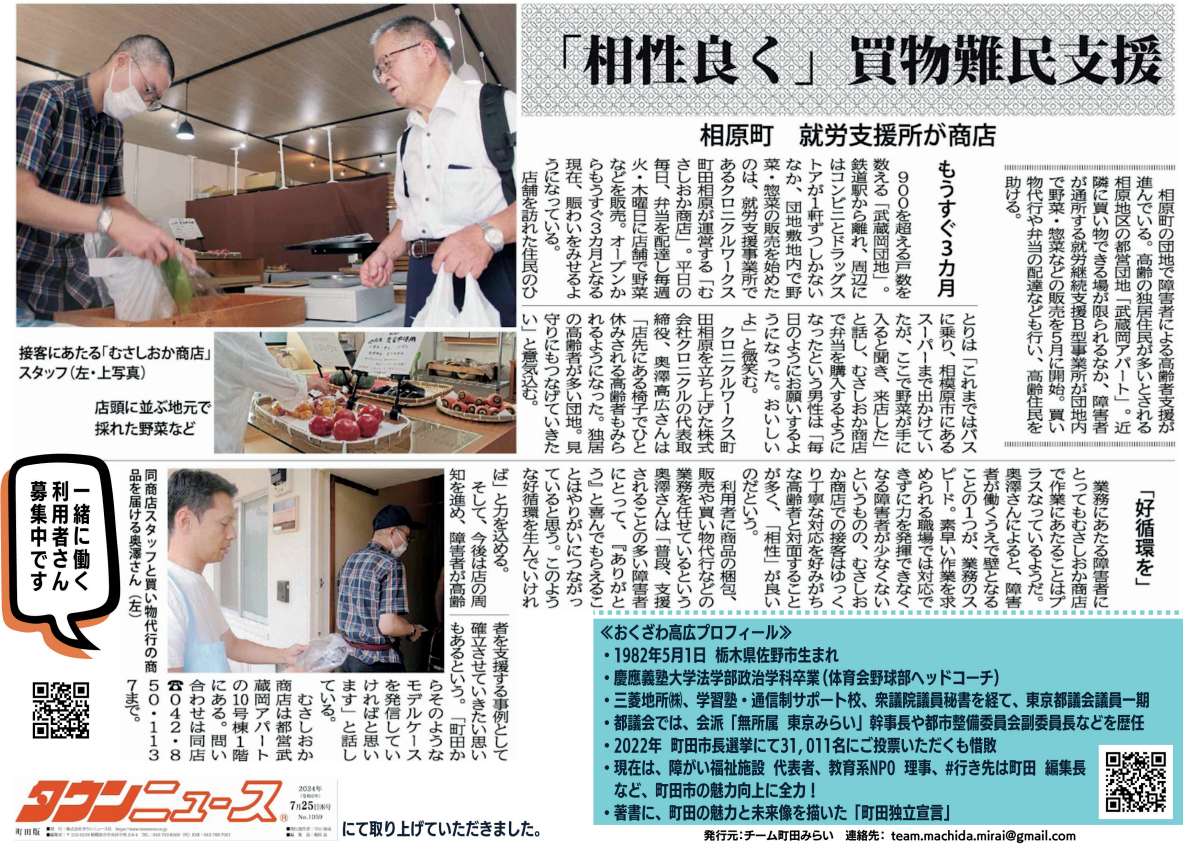 ・現在は、障がい福祉施設を立ち上げ、高齢者の買い物支援や地域活性化に取り組む